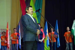 Учасників форуму привітав зі сцени Едуард Броніславович Лебединський, генеральний директор УДЦ «Молода Гвардія», Макосій Дмитро Іванович, директор Одеського обласного гуманітарного центру позашкільної освіти та виховання, та почесний гість – Чугай Ангеліна Володимирівна, кандидат географічних наук, доцент, декан природоохоронного факультету Одеського державного екологічного університету.